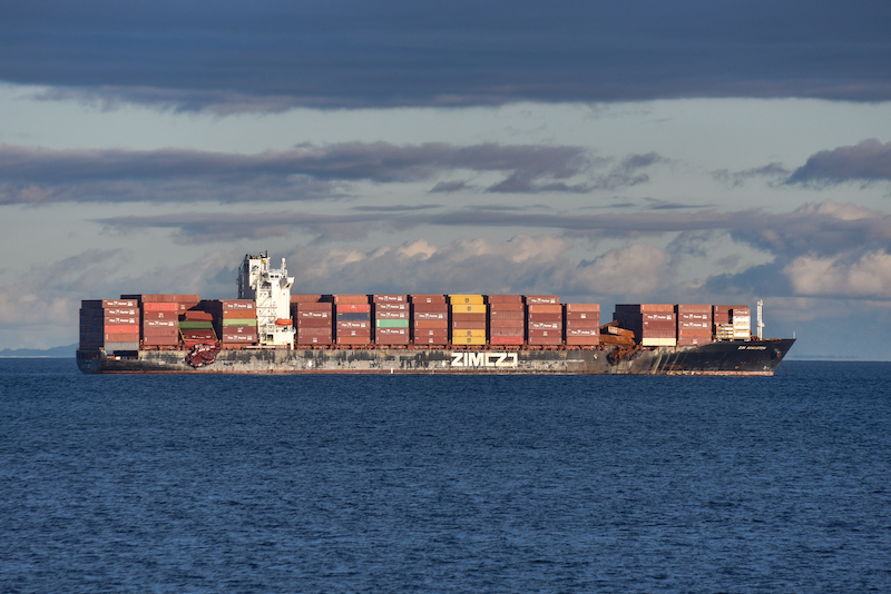 Photo: M/V ZIM Kingston at anchor off British Columbia in November 2021, after losing 109 containers overboard and suffering an on-board fire that burned for five days. Gordon Leggett/Wikimedia Commons